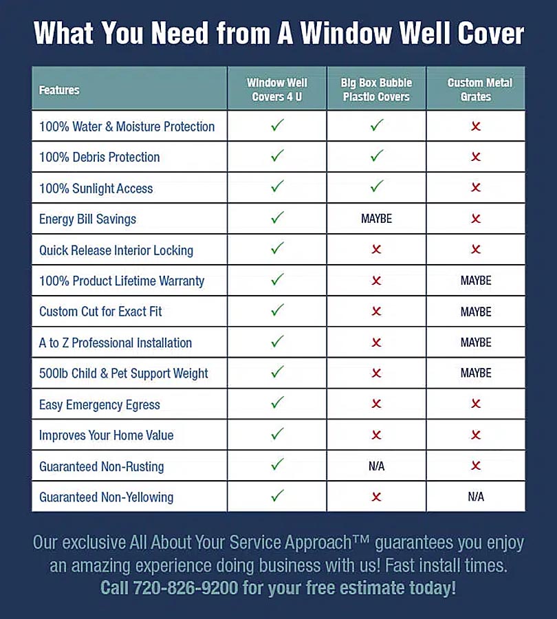 There are several options for window well covers, but our covers offer many benefits over competitors, including: